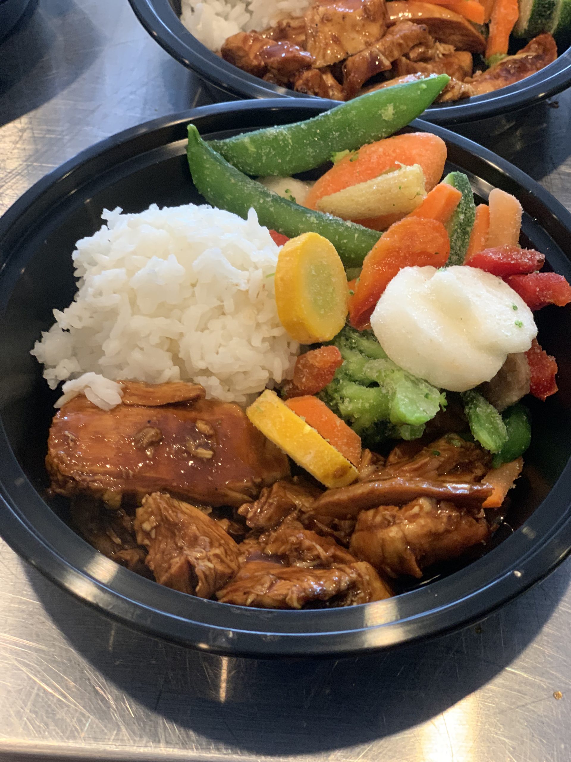 Jasmine rice topped with grilled chicken medallions simmered in our NEW homemade Gluten Free teriyaki sauce and served with a side of hibachi-style veggies.