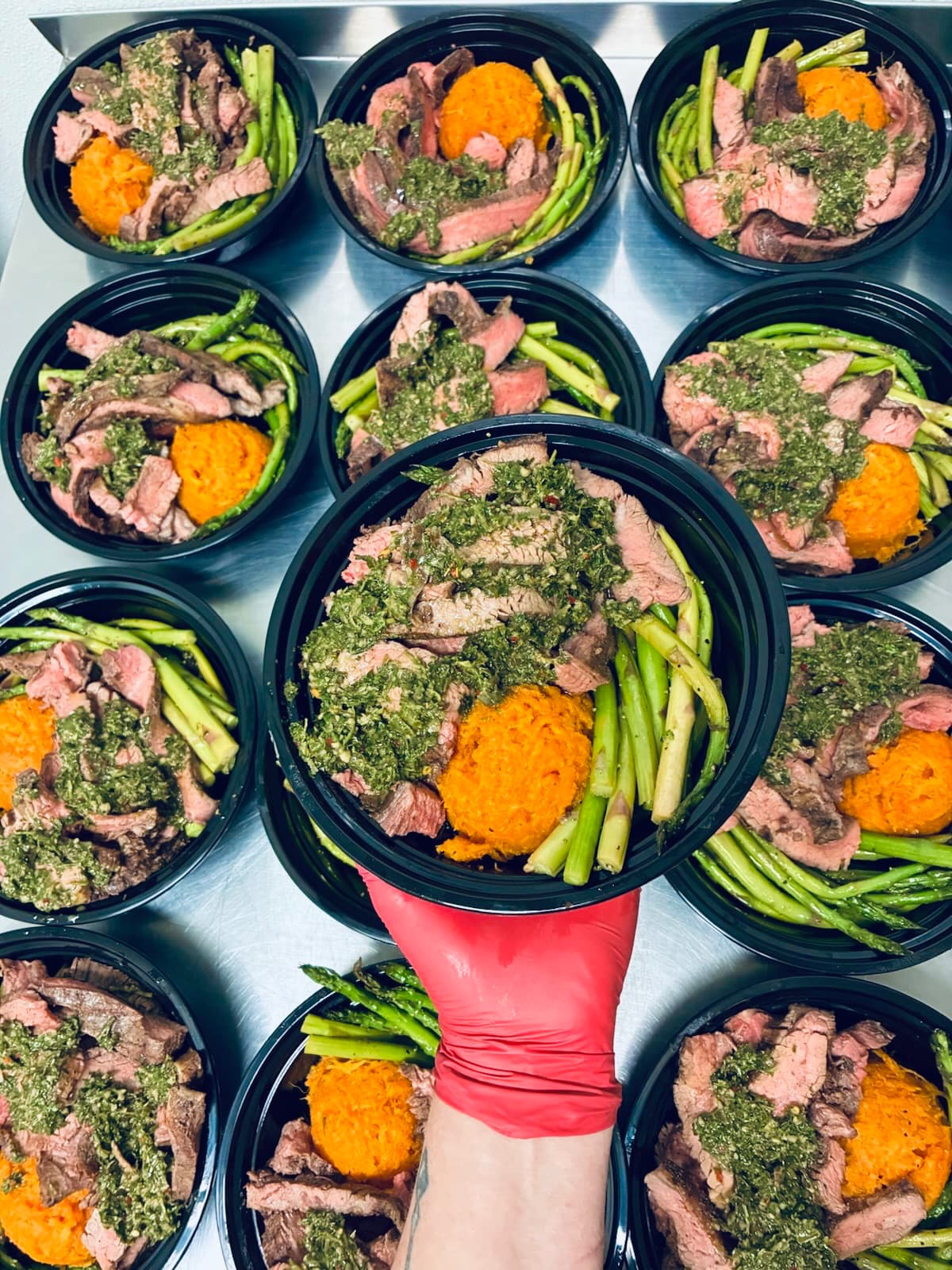 Grilled flank rubbed down and tossed on an open flame and garnished with our delicious chimichurri. ย Served with smashed sweet potatoes and roasted asparagus.